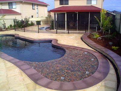 The latest trend in poolside landscaping. Enjoy the pleasant ambience of this water feature, enhancing your pool experience.